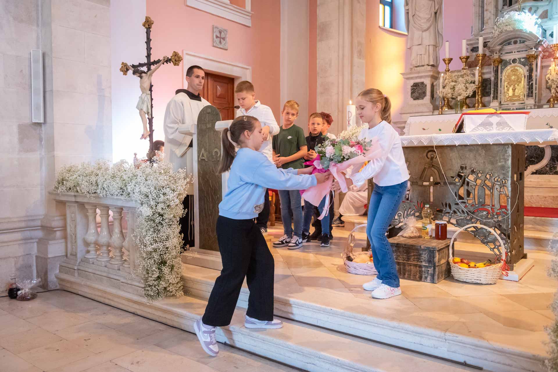U sv. misi kao prinos darova, djeca su prinijela plodove zemlje kojima se služimo u svakodnevnom životu, ali i u sakramentima, uz prigodne tekstove koji su podsjetili na Božju dobrotu i obilje Njegovih darova.