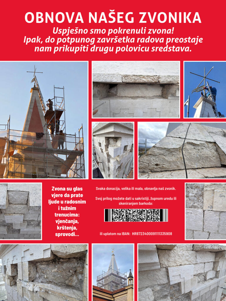 Zvona su glas naše vjere – pomozimo im da žive! Zvona su glas vjere da prate ljude u radosnim i tužnim trenucima: vjenčanja, krštenja, sprovodi… Draga braćo i sestre, Naš zvonik, prepoznatljiv simbol Metkovića i čuvar svetog Ilije, stoji ponosno već više od 150 godina. Visok 27 metara, uzdiže se iznad našega grada i svojim […]