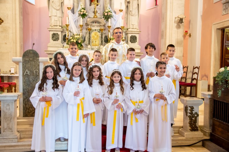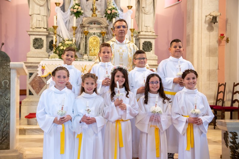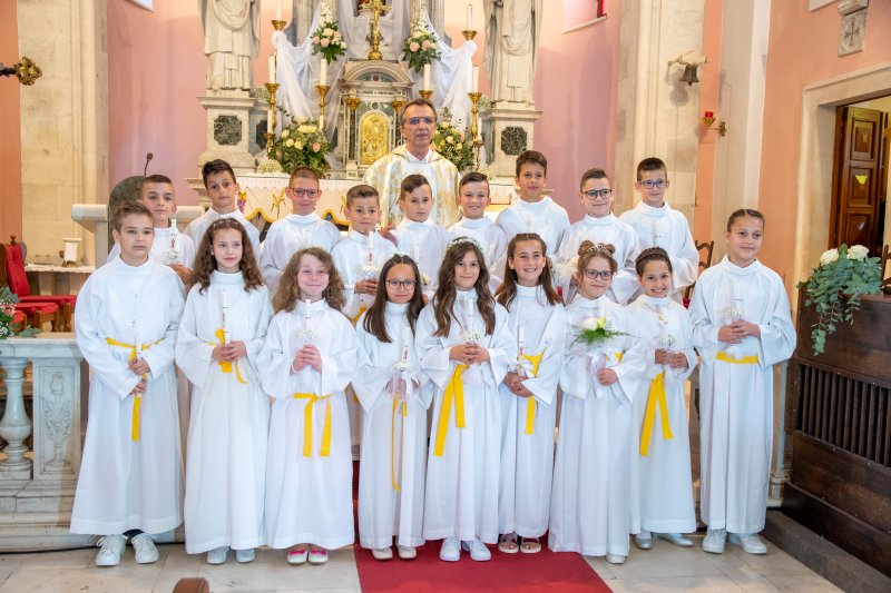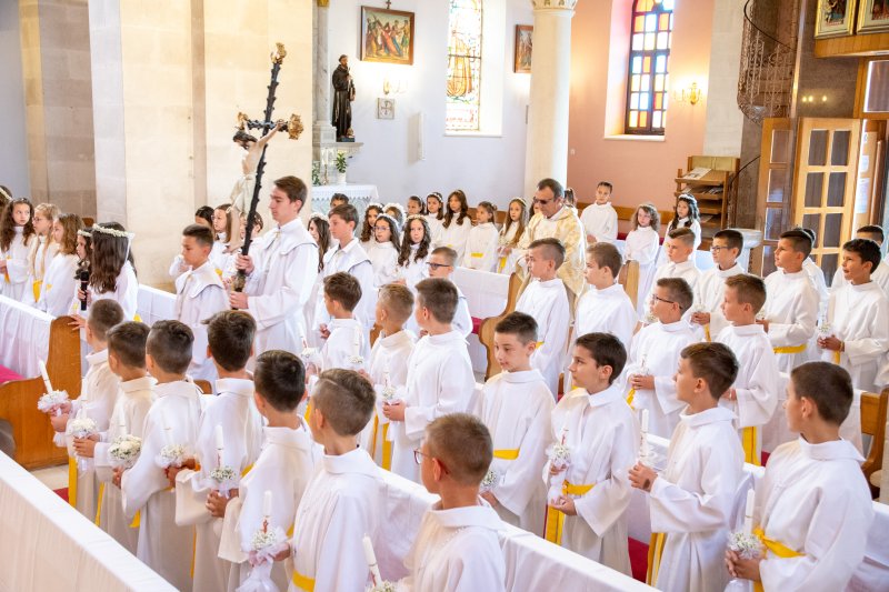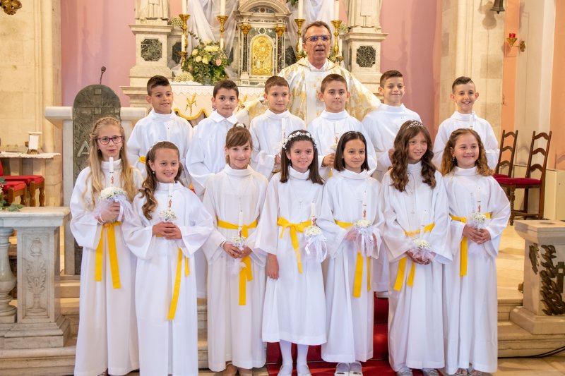 Slavili smo prvu pričest u našoj župnoj crkvi sv. Ilije 23. svibnja 2021. 343 U nedjelju, 16. svibnja, je bilo slavlje prve pričesti u župnoj crkvi sv. Ilije. Pričestilo se 67 učenika trećih razreda osnovne škole. Misno slavlje je predvodio župnik fra Anta Bilokapić, a pjevanje je predvodila č.s. Mila Deak. Podijeli... vezane objave. . . Naš dječji zbor na susretu „Zlatna harfa“ u Imotskom Posjet mladih Domu za starije u Metkoviću Misa uskrsnoga bdijenja u crkvi sv. Ilije Veliki petak u našoj župi – brojni vjernici sudjelovali u obredima i procesiji Veliki četvrtak – Misa večere Gospodnje: ustanova euharistije i svećeničkog reda
